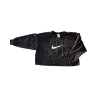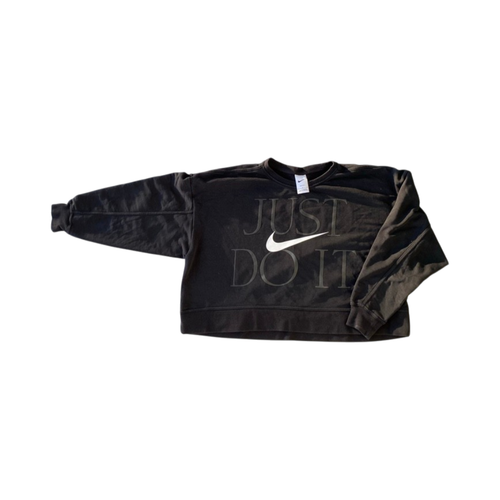 Musta Nike Dri-FIT collegepaita, logo edessä. Lyhyt ja leveä malli, koko L