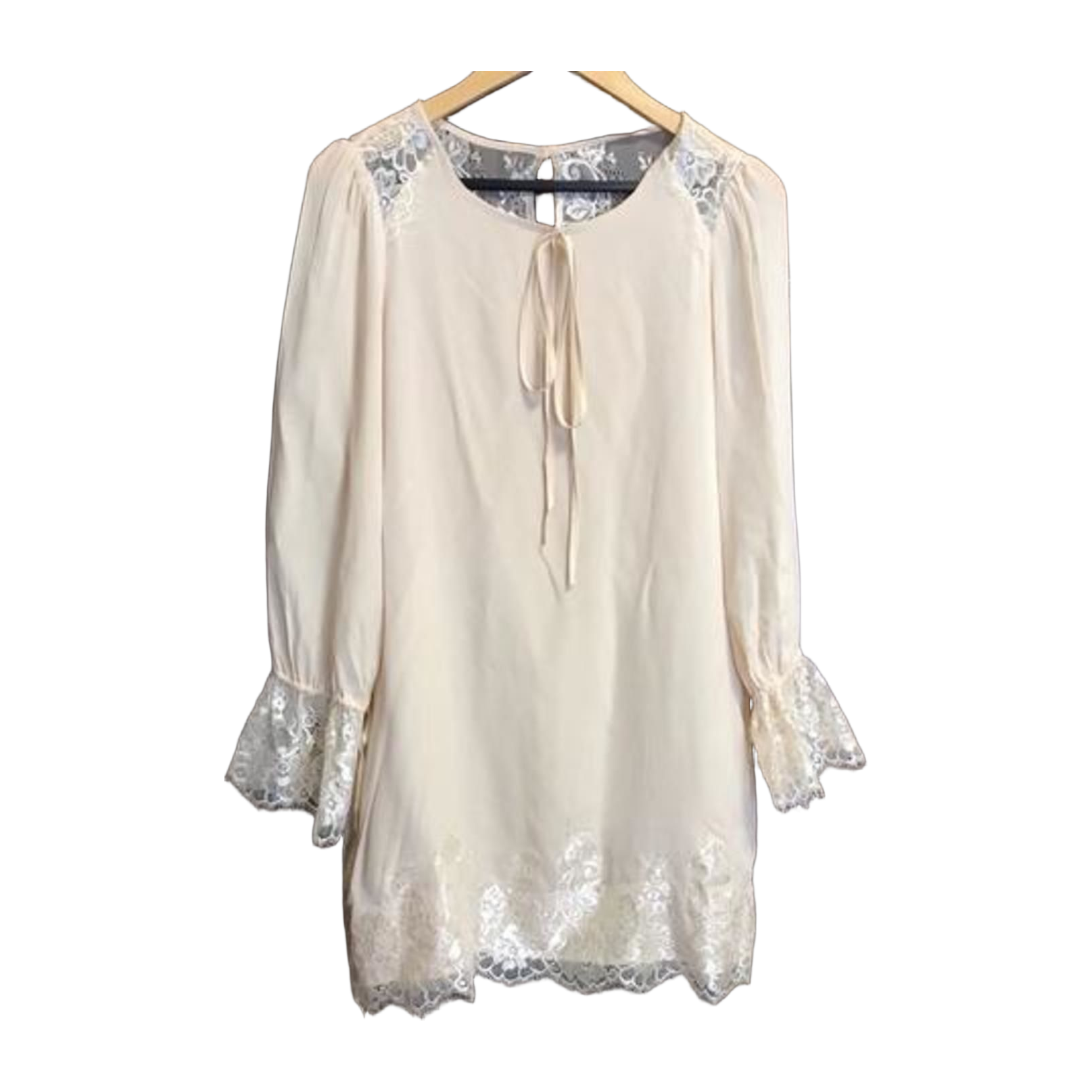 14mm silk crepe de chine. Bust: 90, length:82cm, shoulder:36cm, sleeve: 58cm