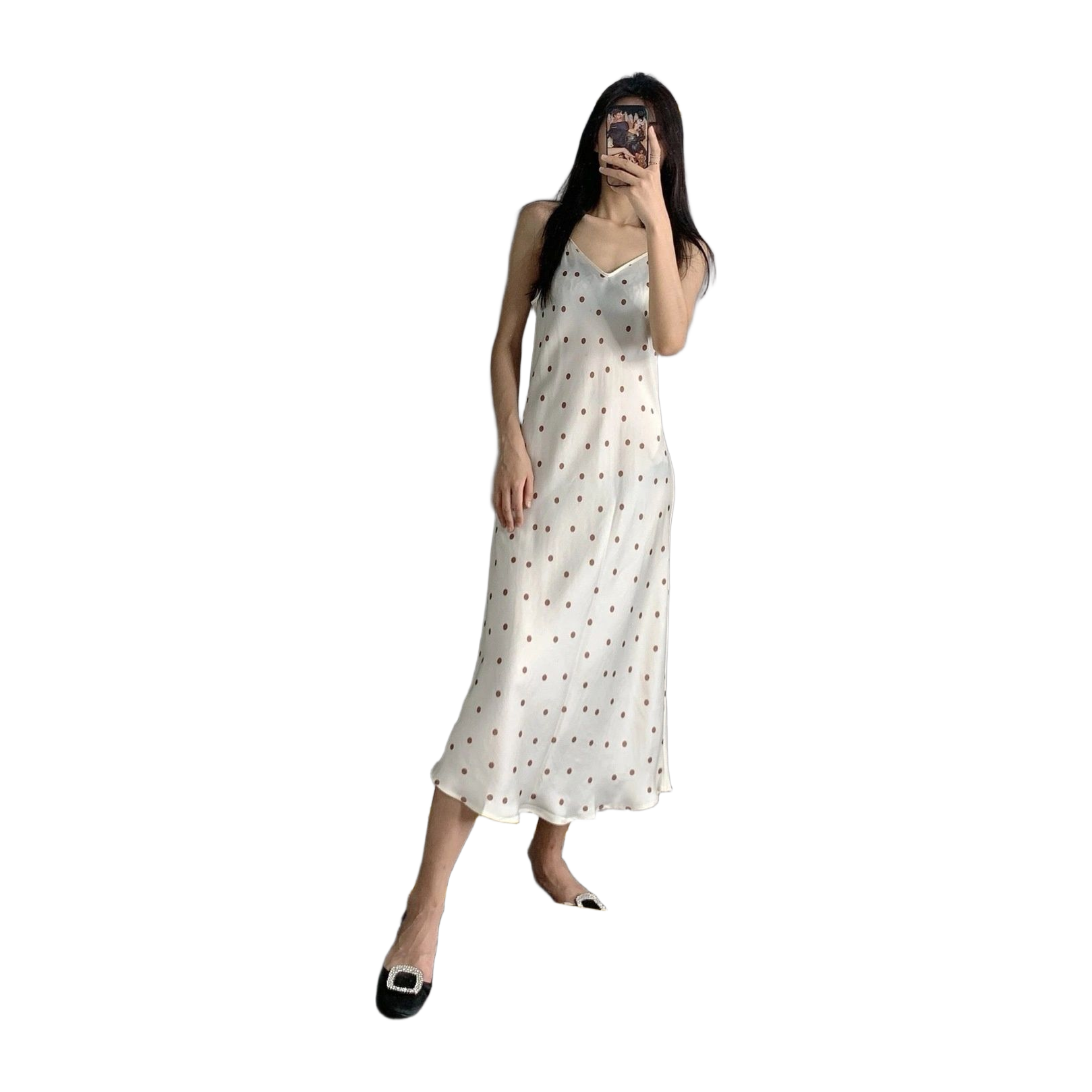 100% silk, for size S. Bust 49*2cm length: 120cm; cut on the bias, go with your body shape.