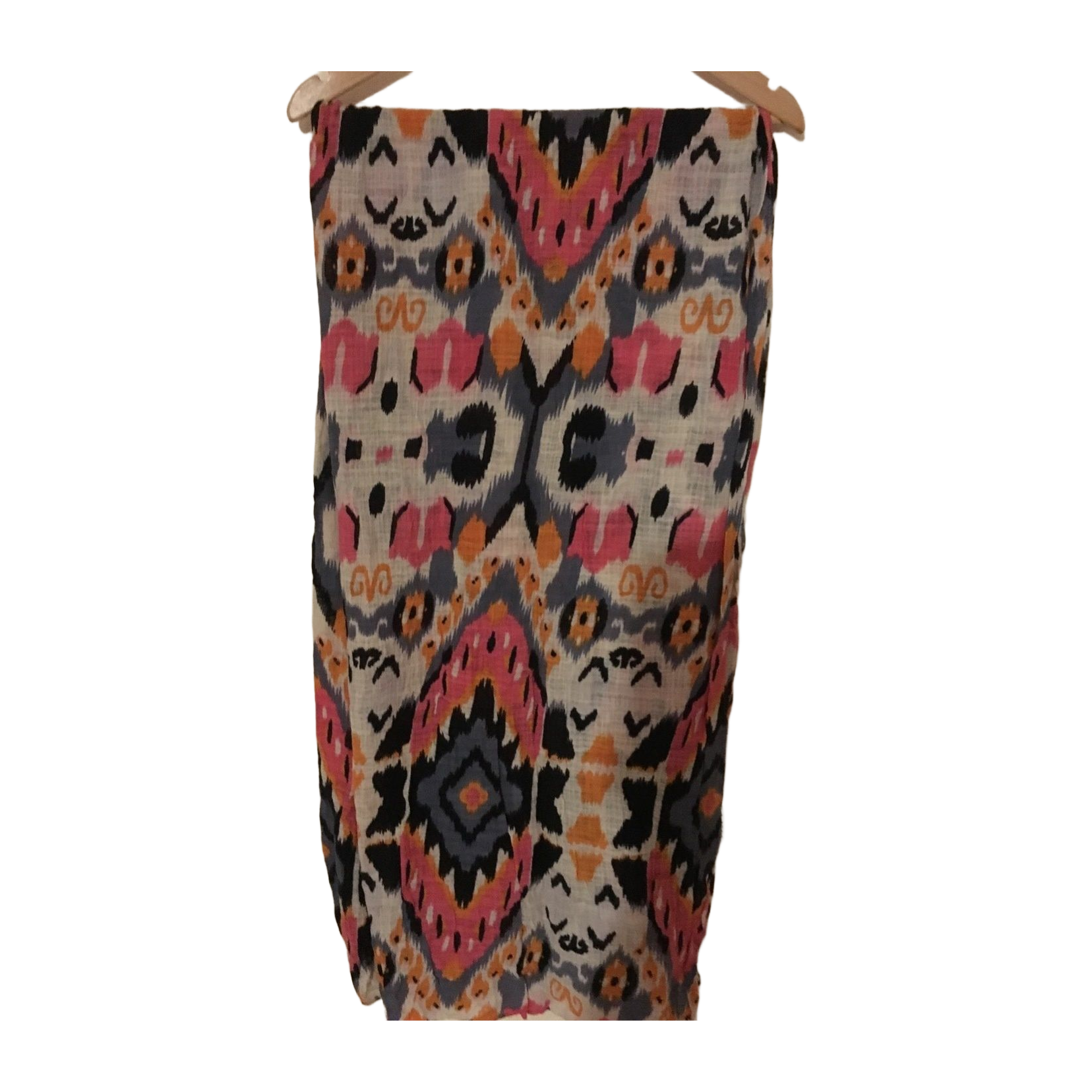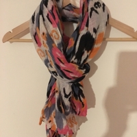 Värikäs huivi, jonka mitat ovat pituus 160cm ja leveys 90 cm. Pari kertaa käytetty.