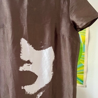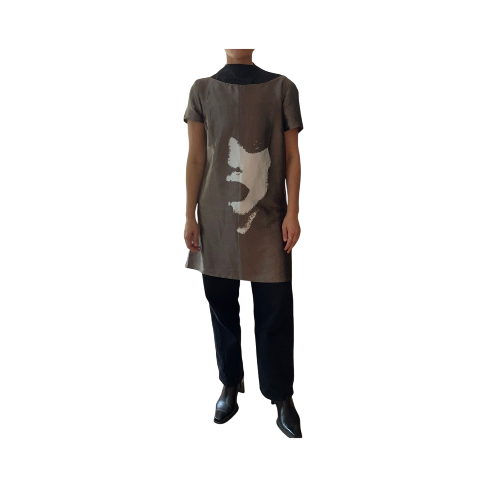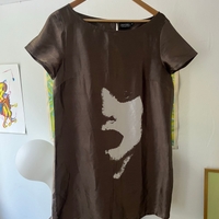 Lyhyt hihainen satiinipintainen mekko, rento istuvuus.