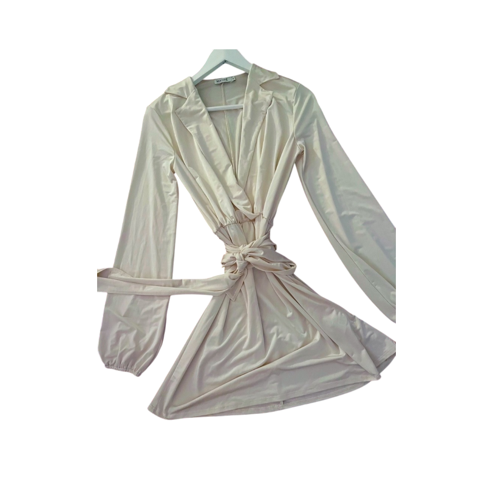 Vaalea, satiinimainen kietaisumekko vyöllä, koko S.
