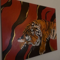 Hakusanat: Tiger tiikeritaulu akryylimaalaus eläintaide moderni taide abstrakti tausta kultamaalaus kultaefektit metallinhohto canvas-taulu sisustustaulu näyttävä taulu eläinaiheinen maalaus uniikki taideteos käsinmaalattu taulu statement piece tiikerimaalaus lahja taiteen ystävälle original art acrylic painting tiger painting animal art modern art abstract background gold paint gold accents metallic art canv
