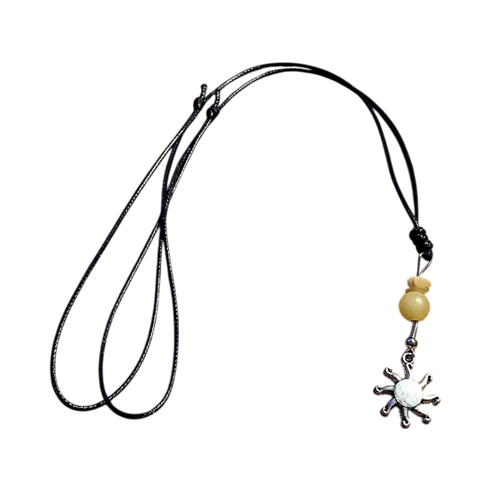 Söpö aurinko kaulakoru, liukusolmut joista voi säätää pituuden itselle sopivaksi