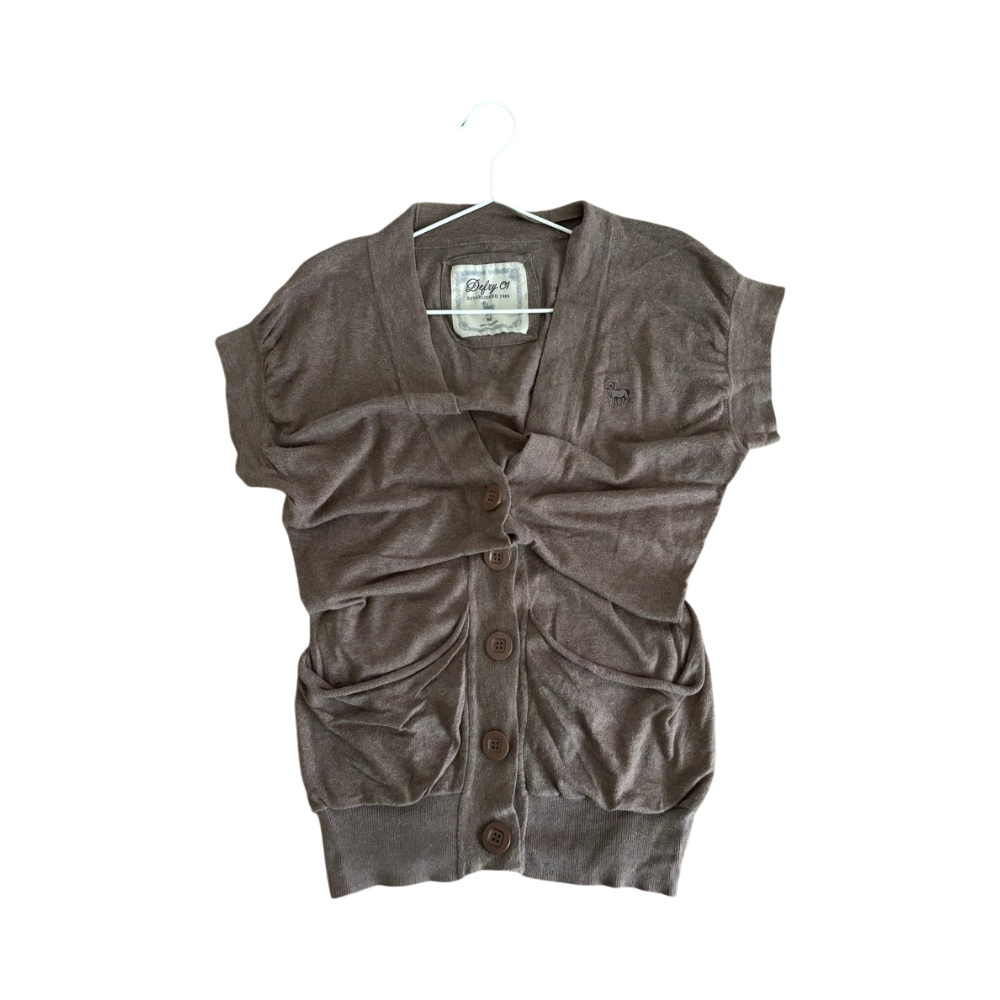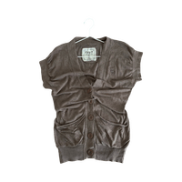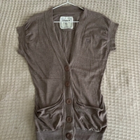 V-mallinen neuleliivi isoilla napeilla ja taskuilla. 100%puuvillaa