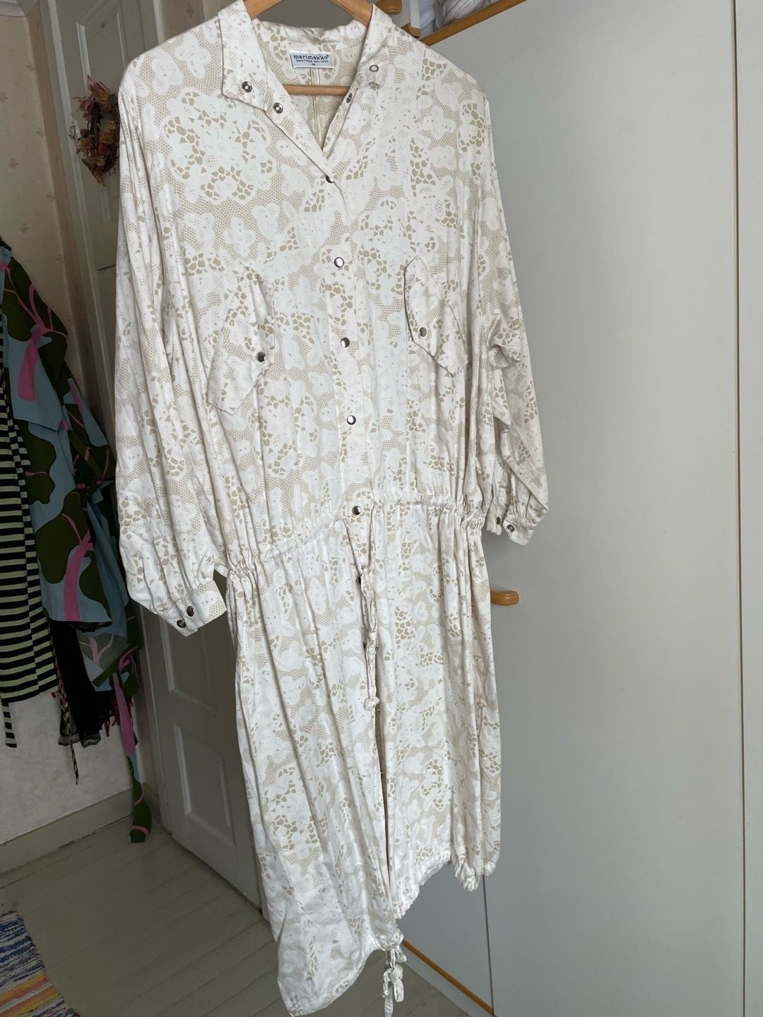 Myyntiin tämä upea mekko/mekkotakki. Ostettu vintage liikkeestä Italiasta ja jäi sitten kaappiin hilloutumaan. Kangas on pehmeää ja laadukasta puuvillaa. Hyvin vähän käytetty. En ole vielä toiseen samanlaiseen törmännyt