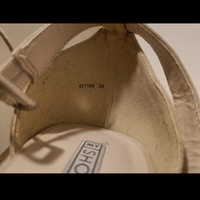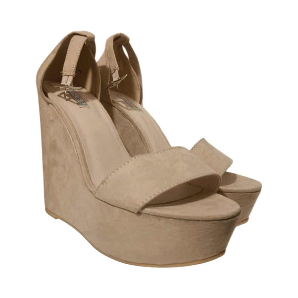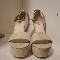 Beiget platform-korkokengät nilkkaremmeillä, hyvällä korkeudella.