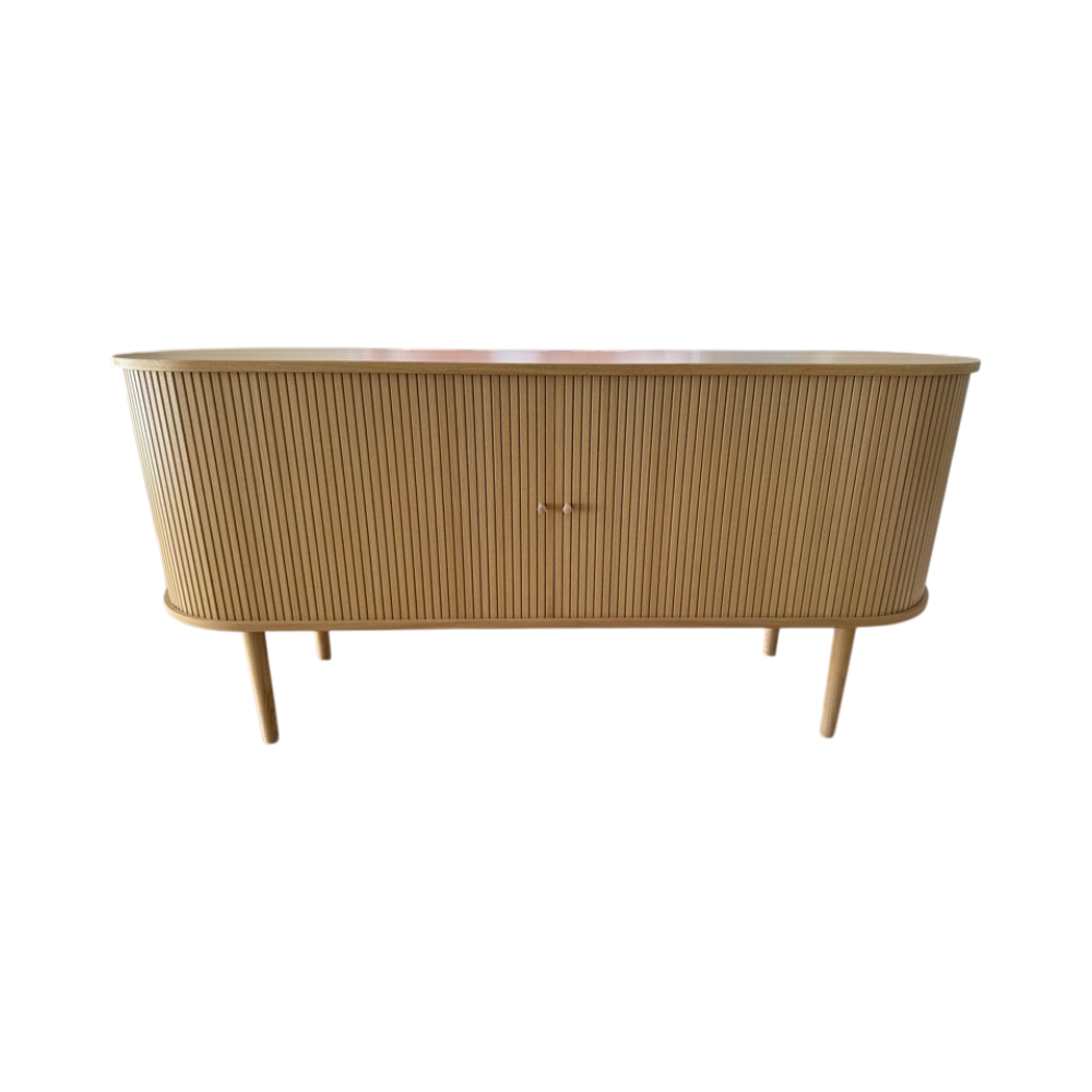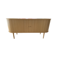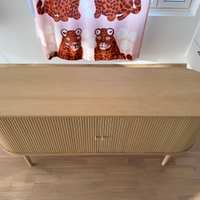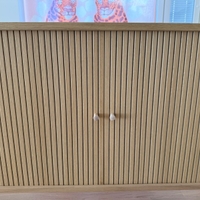 Kunto on kuin uusi. Ei mitään naarmuja tai jälkiä. Kun ovet avaa niin senkistä tulee edelleen tammen tuoksu. Kaikilla hyllyillä ei ole edes säilytetty mitään.