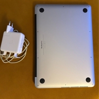Good condition, several scratches on the lid. Battery is slightly degraded but laptop still runs from the battery. Comes with original 60W charger (cable became yellow after years of use, functions normally) and Apple stickers. No box or instruction.