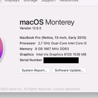 Model: Apple MacBook Pro, Early 2015, Model A1502