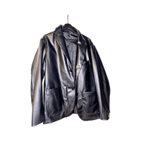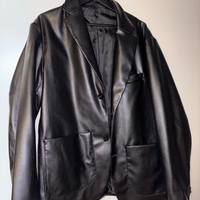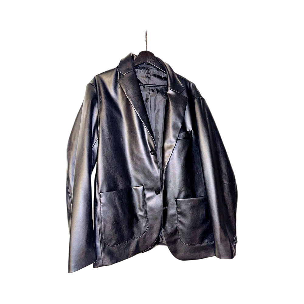 Musta keinonahkainen bleiseri, kaksi nappia, taskut edessä. Relaxed fit.