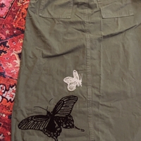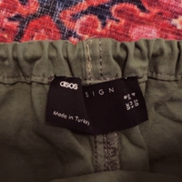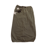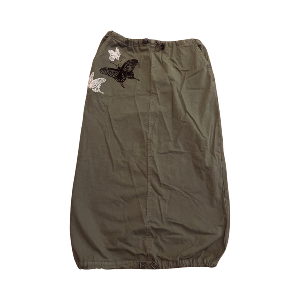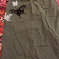 Khakinvihreä midihame, kiristettävä helma, perhosprintti.