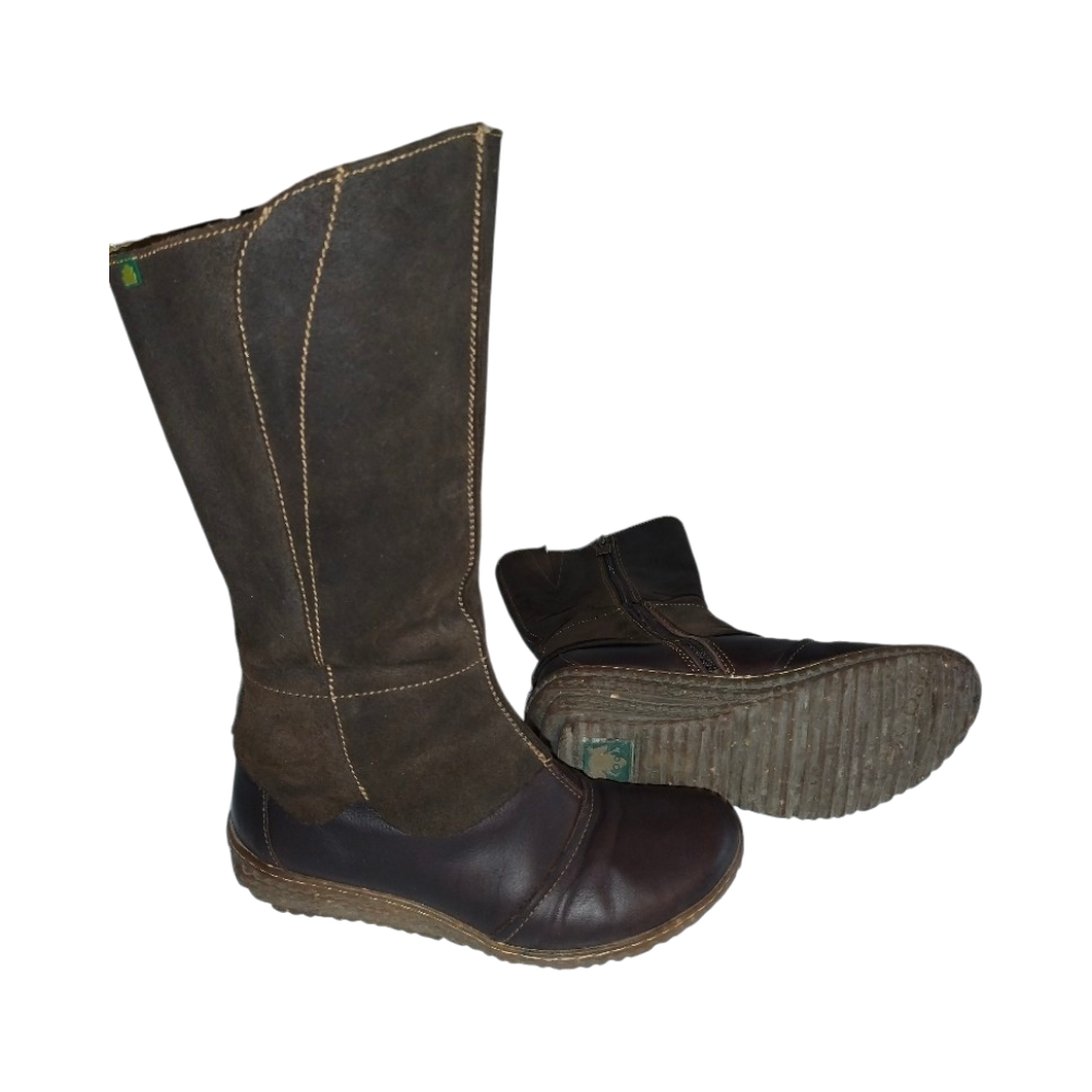 Ruskeat puolipitkät saappaat, vetoketjulla, hyväkuntoiset. Vuoritettu sisältä.