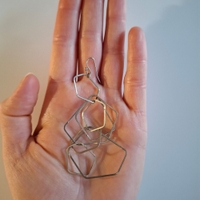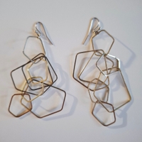 Dangle earrings featuring multiple linked geometric shapes in silver and gold tone. Lightweight design suitable for various occasions.