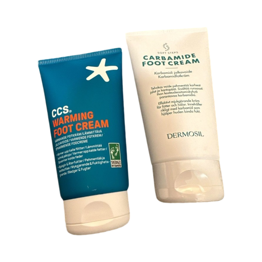 Ccs (apteekista) lämmittää kylmiä jalkoja. Dermosil pehmentää tehokkaasti