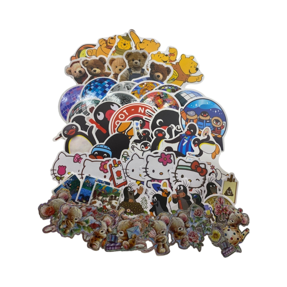 Lähes 50 erilaista tarraa. Ensimmäisen kuvan pingutarrat on myyty.