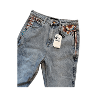 Ihanat kesäiset farkut monivärisillä kirjailuilla. ☀️ Farkut ovat uudet ja niissä on lappu kiinni.