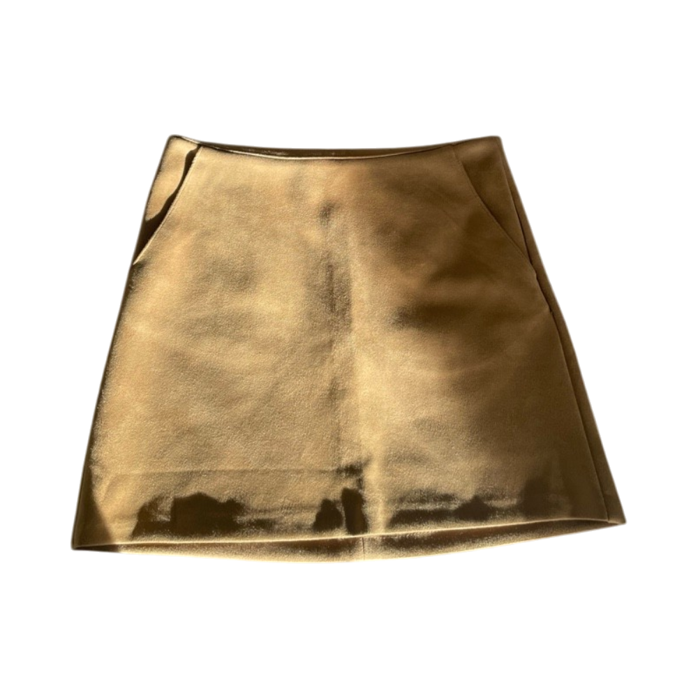 Beige minihame, suora malli ja sivutaskut. Pientä tahraa näkyvissä
