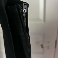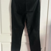 Naisten mustat leggings-housut vetoketjulla sivussa.