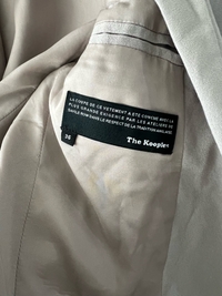Harmaa/beige The Kooples bleiseri, rennon mallini, edessä yksi nappi. Hyvin laskeutuvaa materiaalia. Koko s, Pituus 65cm ja kai kai mitta noin 49cm