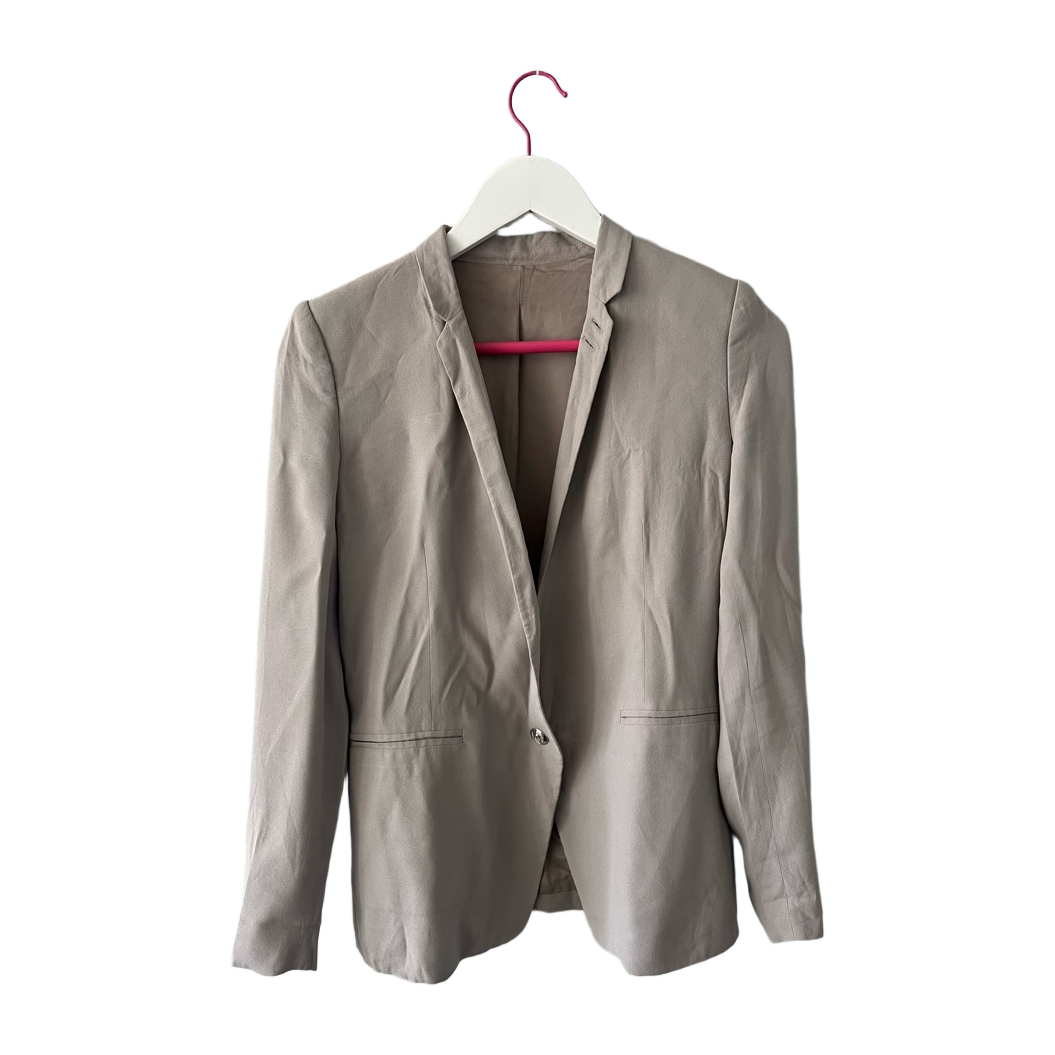 Beige women's blazer with button closure.