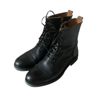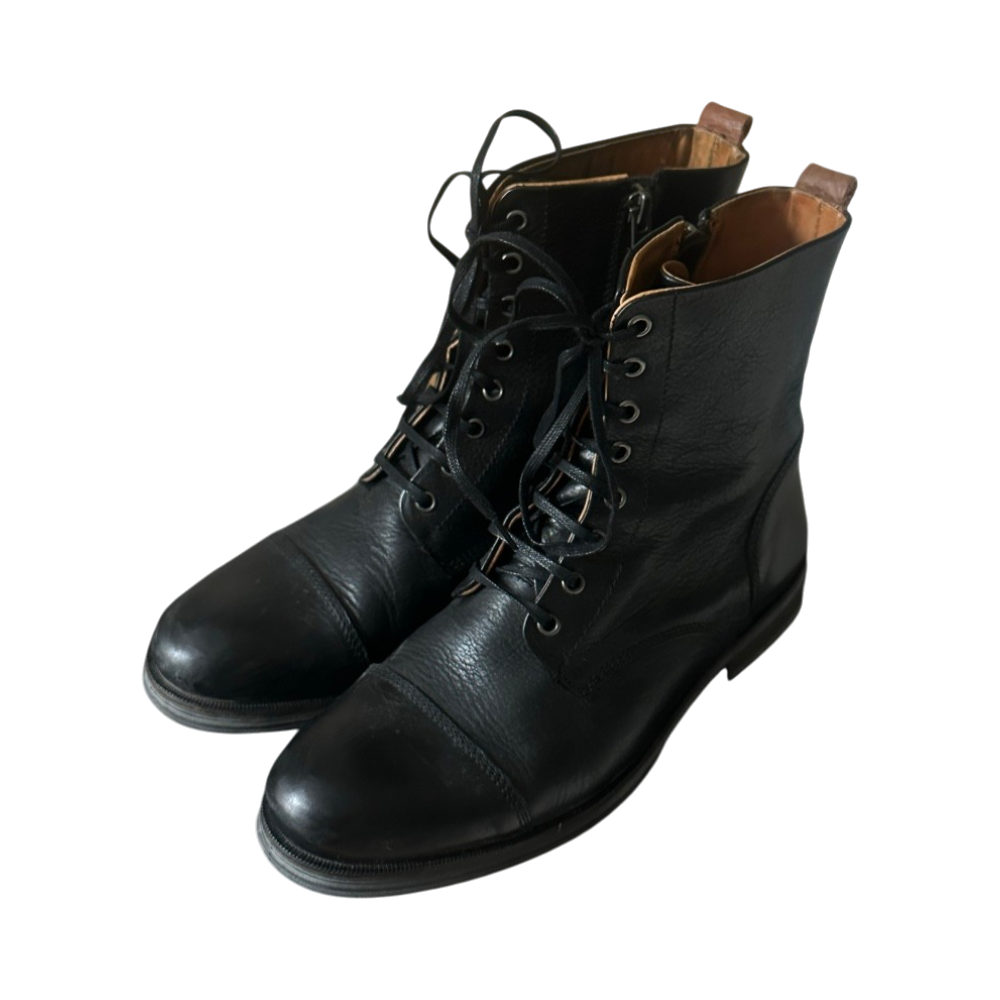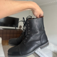 Mustat nahkaiset nauhakärjet, käytetyt mutta siistit.