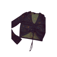 V-aukko, rypytys edessä, läpikuultava mesh-kangas.