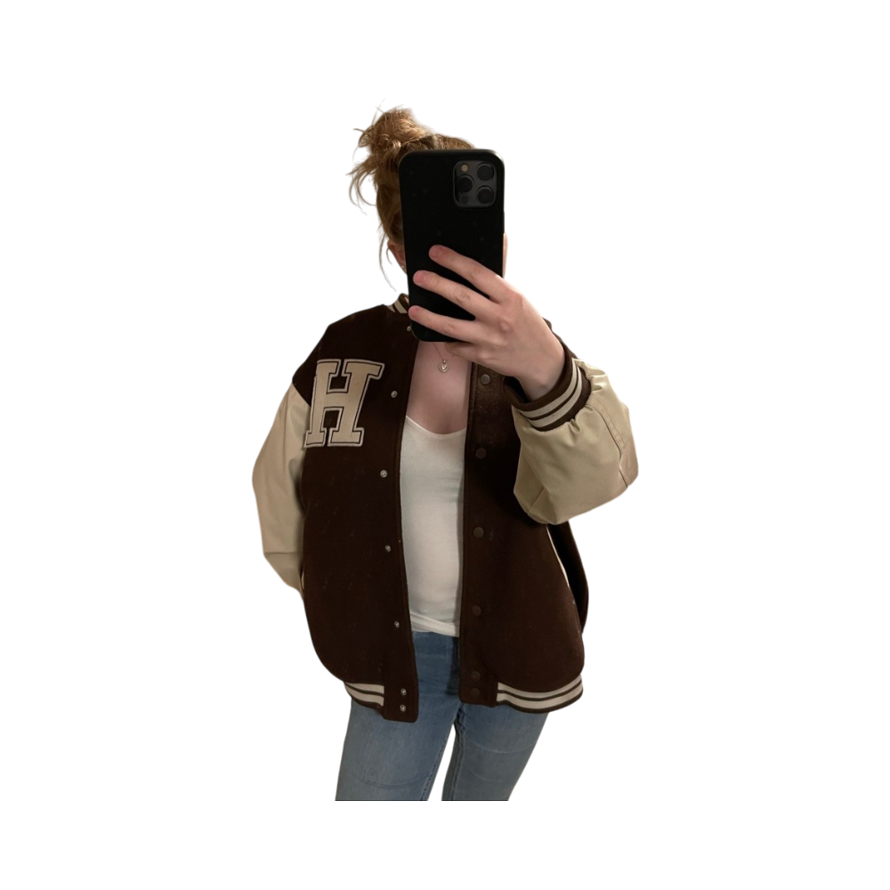 Ruskea baseball takki, beiget hihat, oversize.