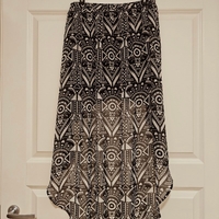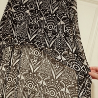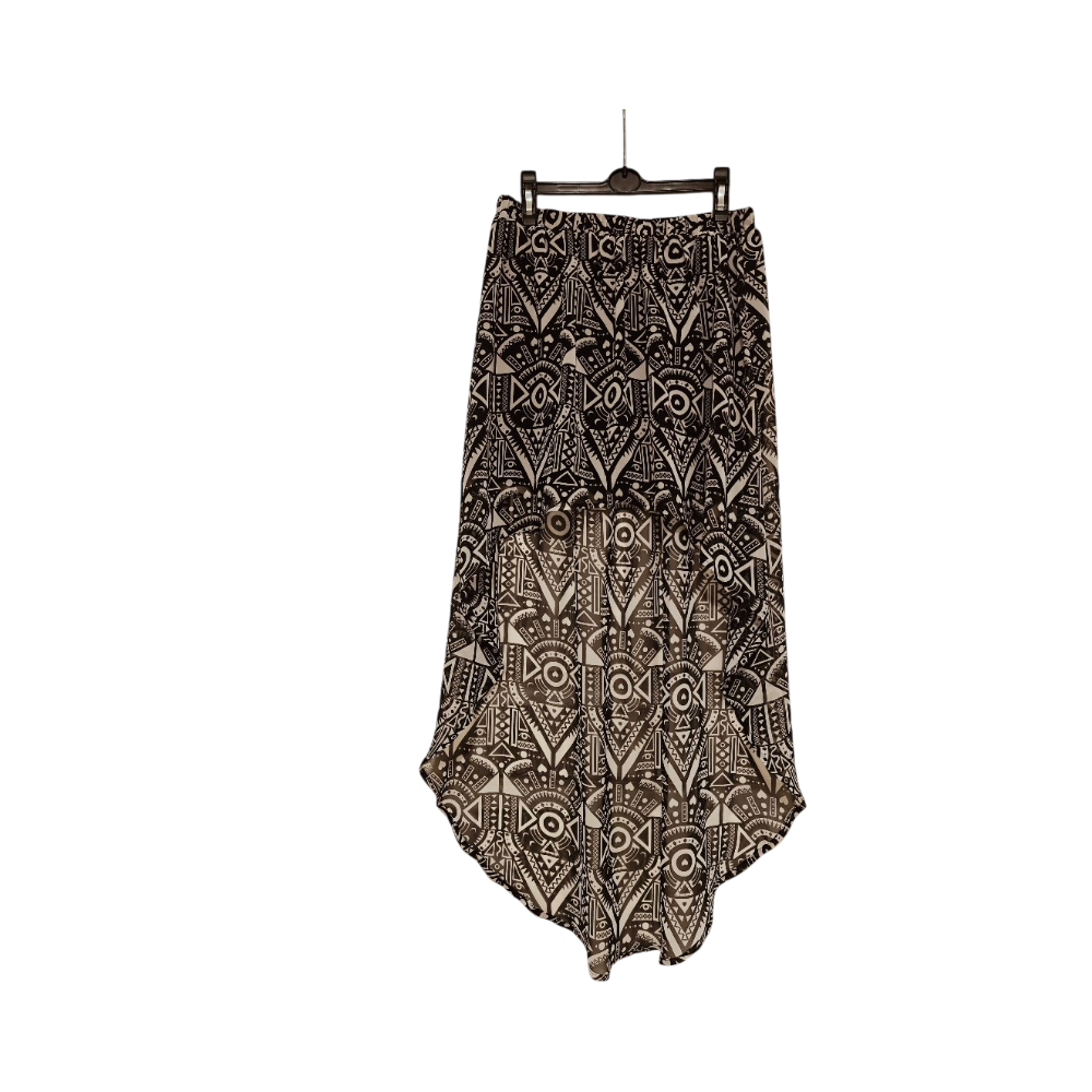 Edestä lyhyemmän mallinen. Alla musta "alushame", joten ei läpikuulla. Joustaa hyvin.