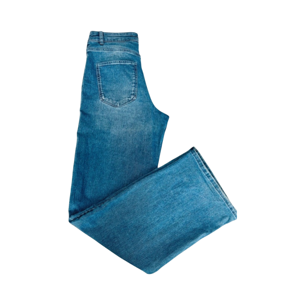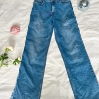 Leveät naisten farkut, mid-rise, sininen farkkukangas.