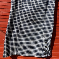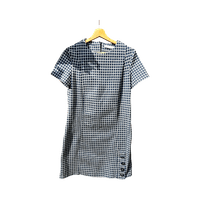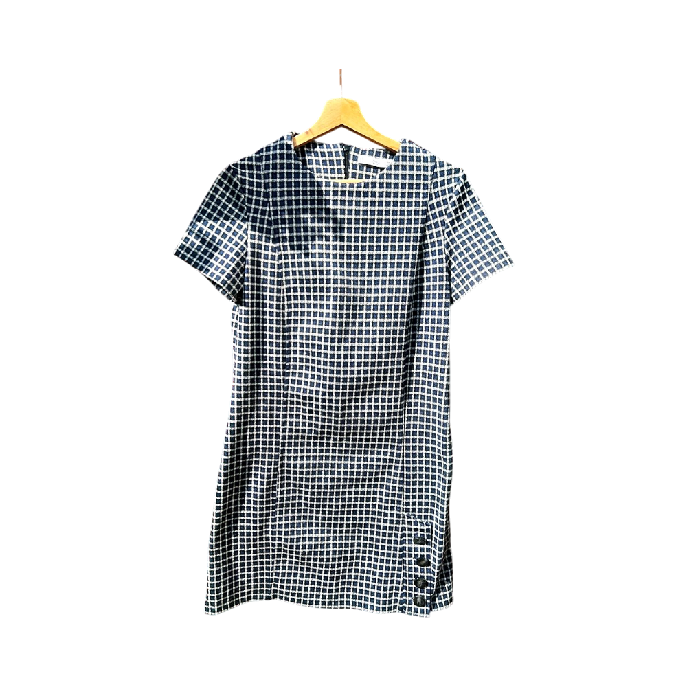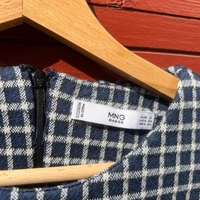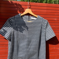 Lyhythihainen ruudullinen mekko, napit helmassa. Koko S. Paksuhko kangas. Vain sovitettu päälle. Materiaalilappu leikattu pois.