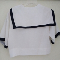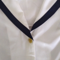Lyhythihainen valkoinen pusero merihenkisillä yksityiskohdilla kasarilta. Mitat: kainalo puolimitta 55 cm, olka helma 44 cm