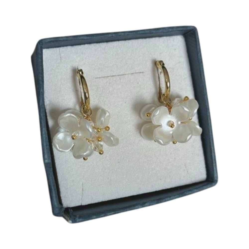 Käsintehdyt korvakorut kukilla. Saatavilla myös hopeisilla metalliosilla✨