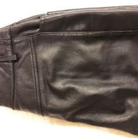 Aitoa, laadukasta ja pehmeää nahkaa, vuori 100% polyesteria. Noin koko 36, teetetty.