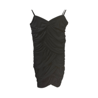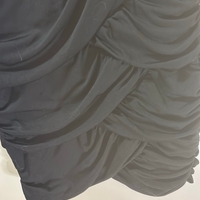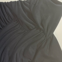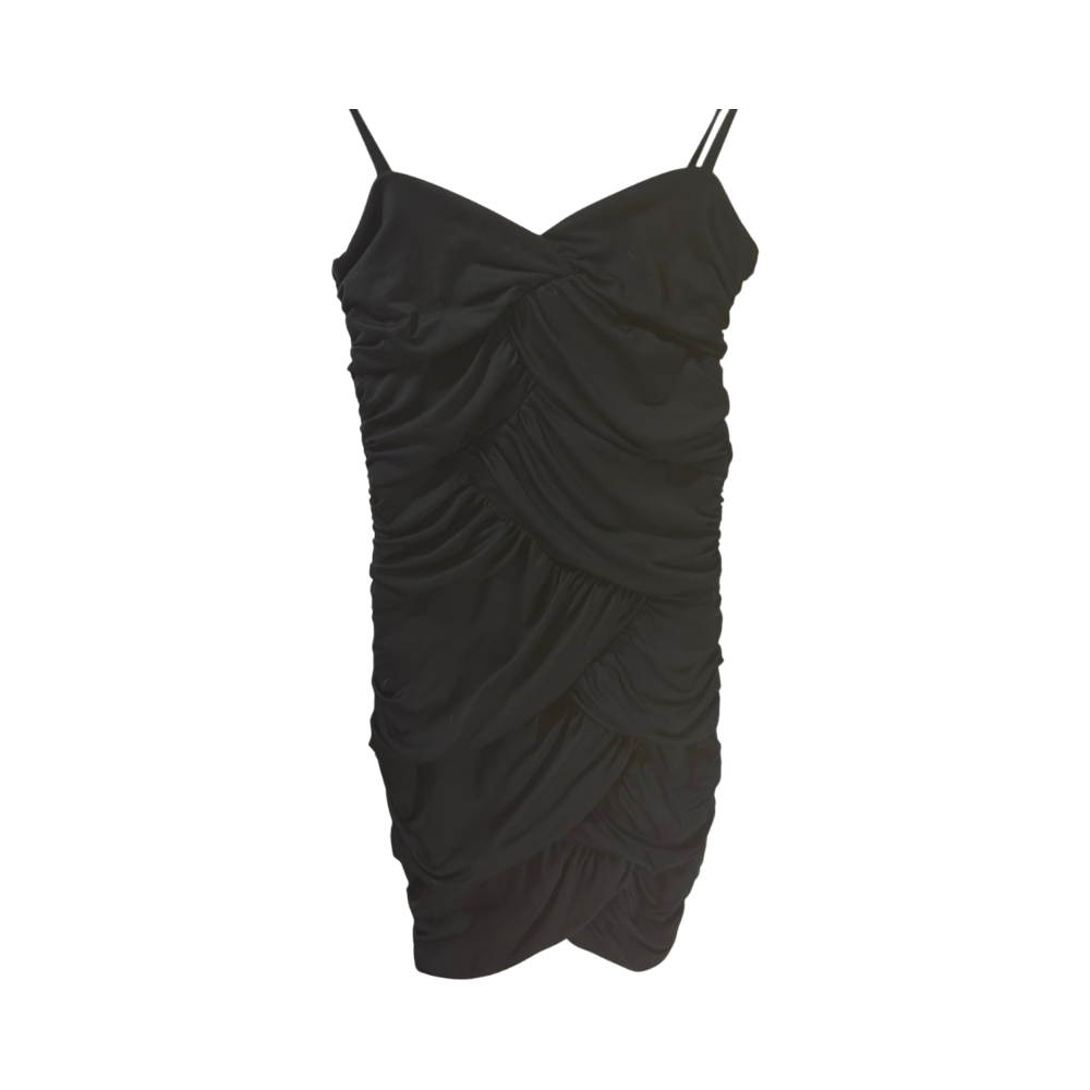 Tiukka, rypytetty spagettiolkaiminen juhlamekko.