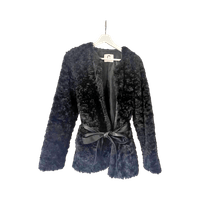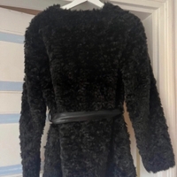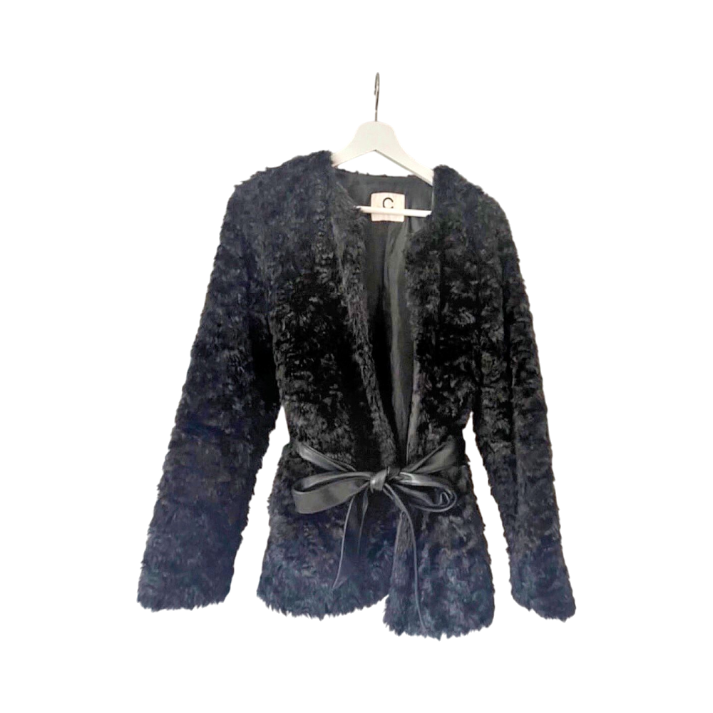 Cubus black faux fur coat in size M, with a leather belt. Very good condition.