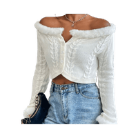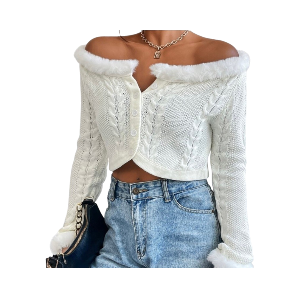 Off-shoulder lyhyt neulekarvareunuksin, napit edessä.