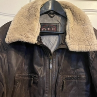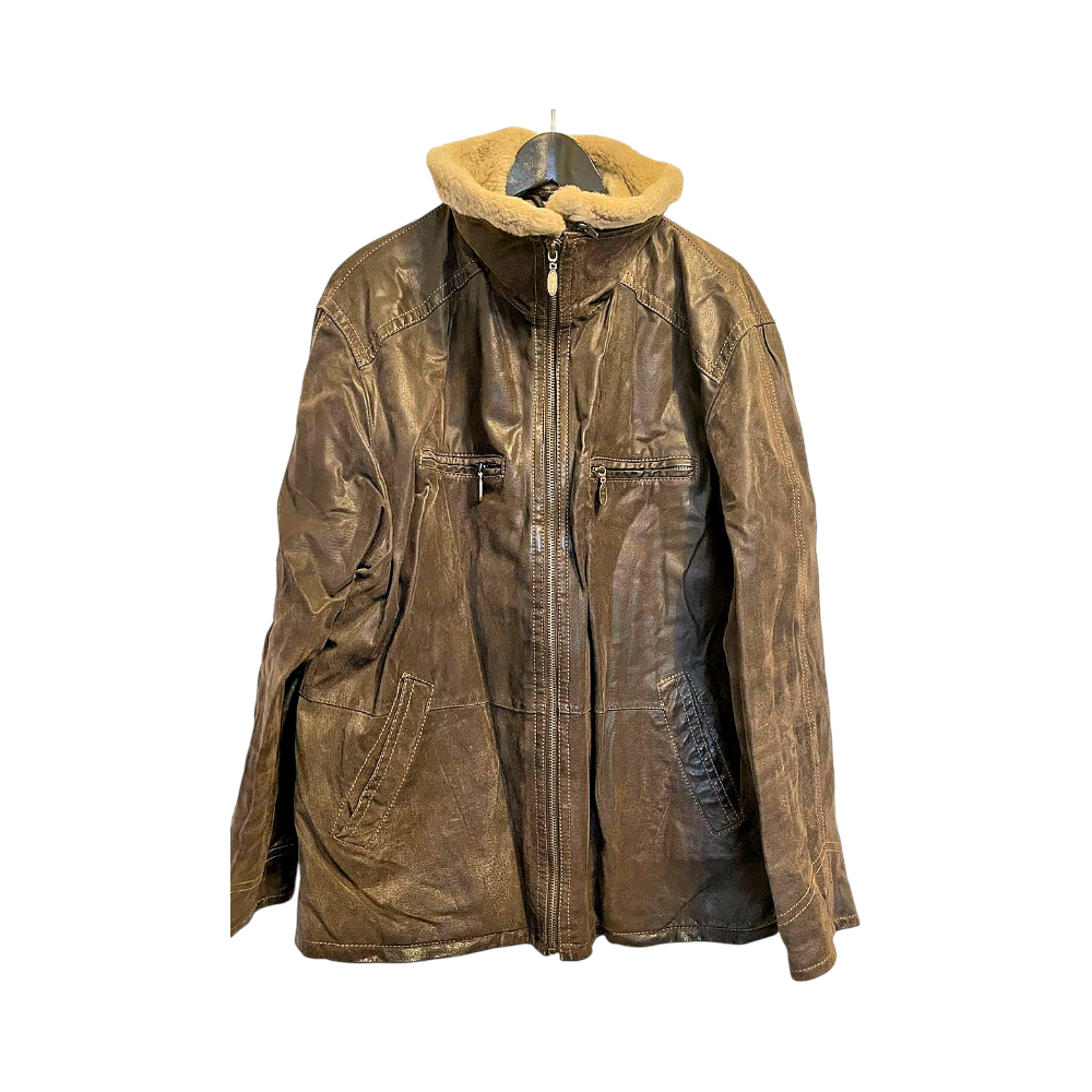 Käytetty ruskea nahkatakki, pehmeällä vuorilla.
