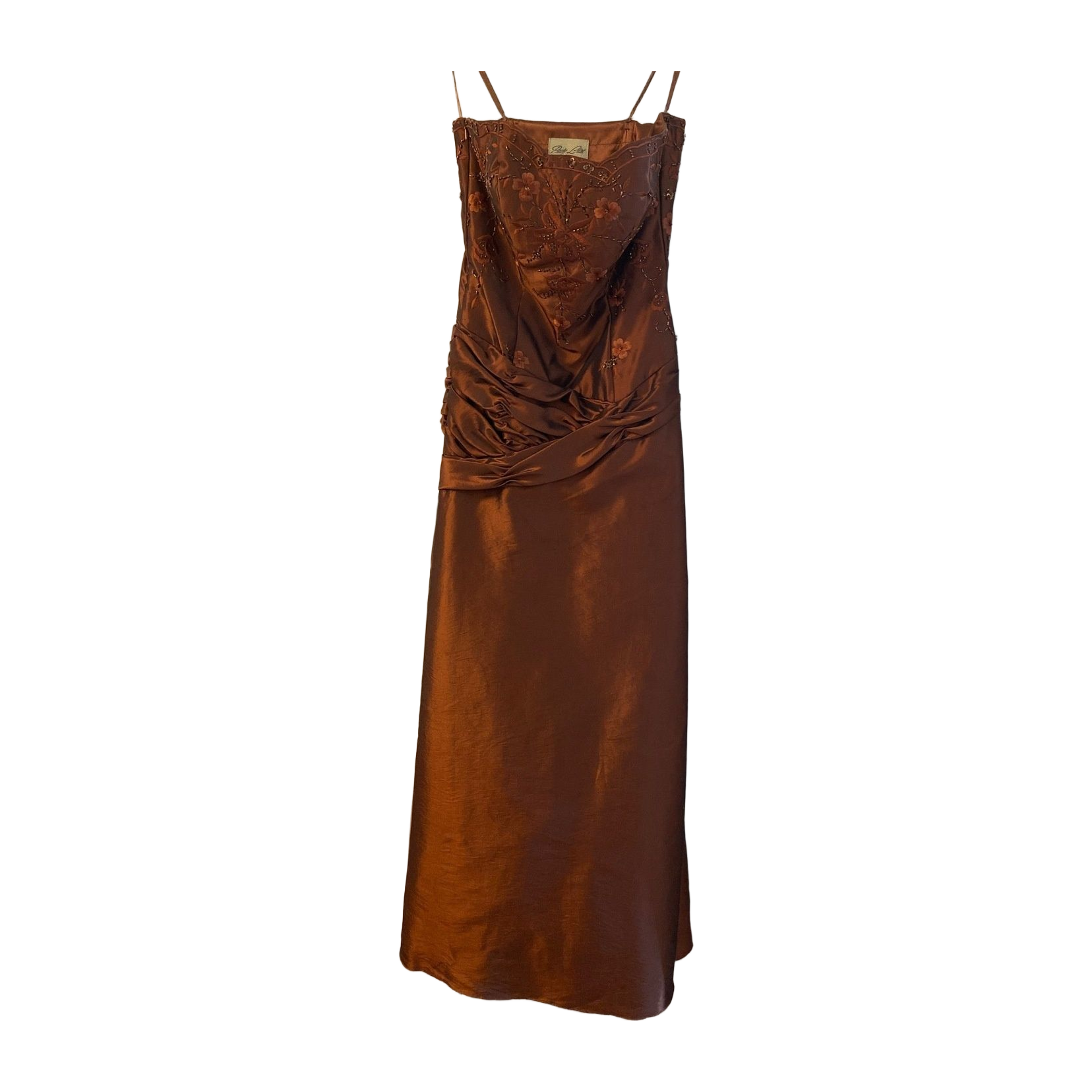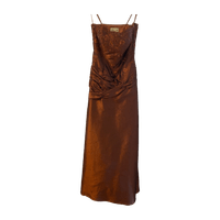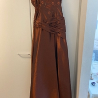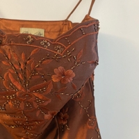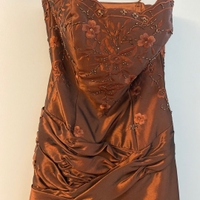 Kauniin kuparisen ruskea olkaimeton juhlamekossa, vuosia sitten ollut kerran käytössä vanhojentanssipäivänä. Loistavassa kunnossa :)