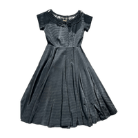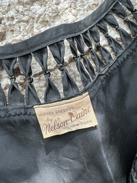 Upea Nelson-Caine vintage mekko, kellohelmainen. Vastaa arviolta kokoa s/m, pituus 120cm, kai kai mitta 50cm ja vyötärönympärys 74cm. Sivulla vetoketju