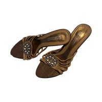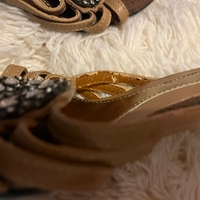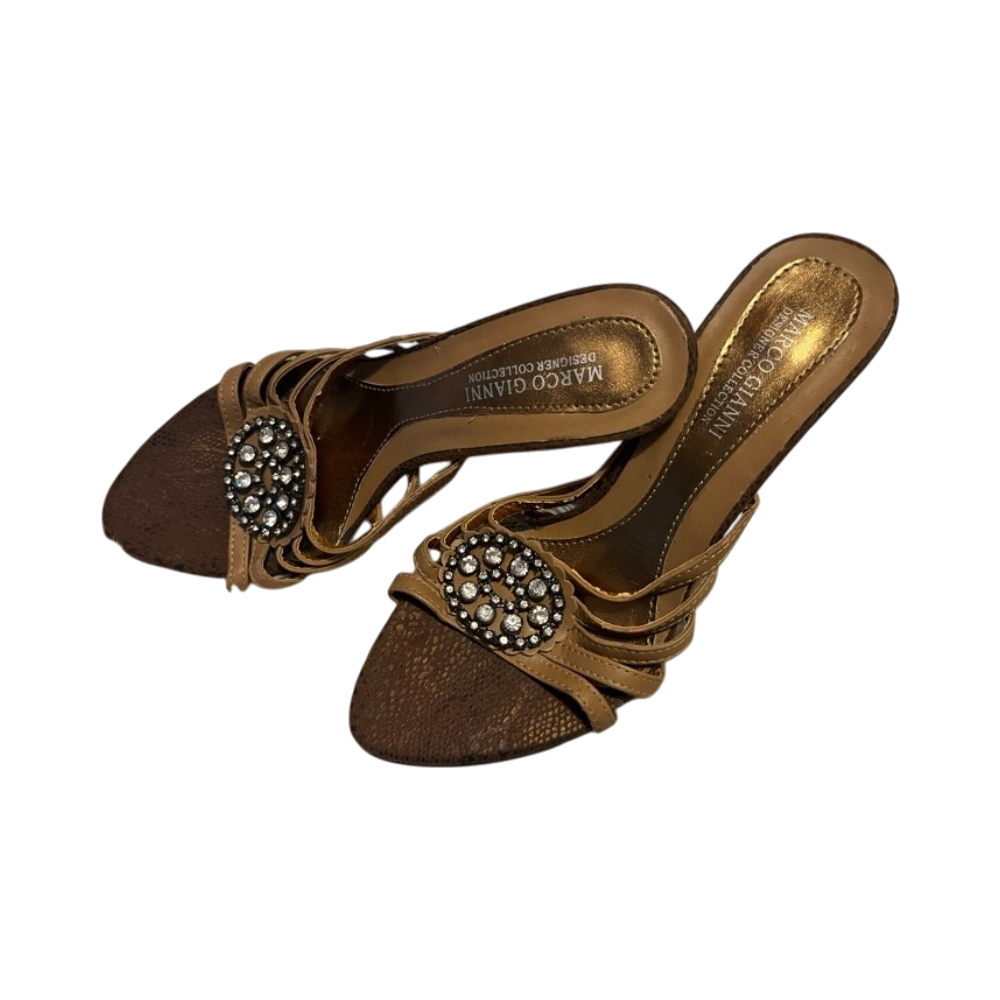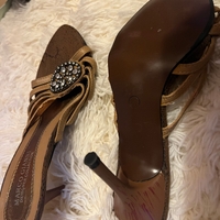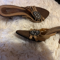 Beiget avokkaat koristeellisella kivikoristeella, käytetyt. Vintage. Marco gianni. Kulumaa nauhojen alla näkyy kuvassa