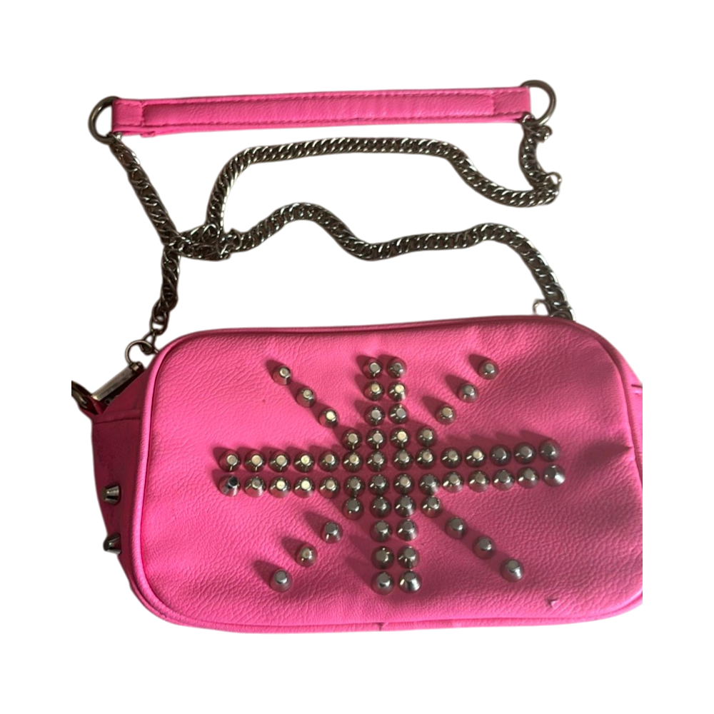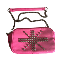 Kompakti olkalaukku kultaisella ketjuhihnalla, niittikoriste.