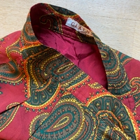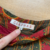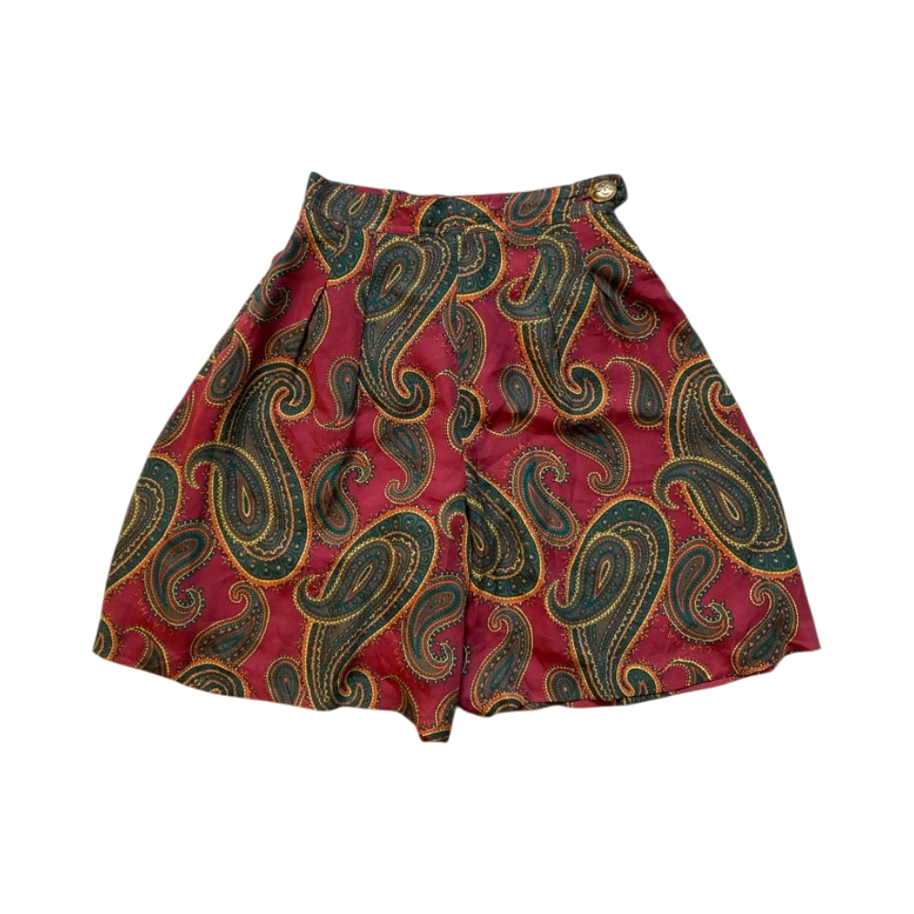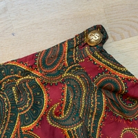 Punaiset leveälahkeiset kuviolliset shortsit S. Vyötärö n. 30cm, lantio n. 57 cm. Sivussa vetoketju. Takataskuista irronneet napit, muuten erinomaisessa kunnossa!