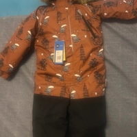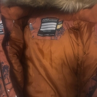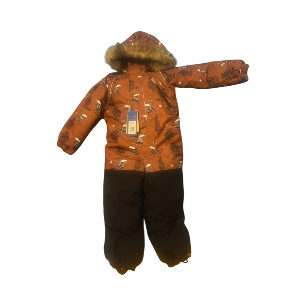 Lämmin, lasten haalari hupullisella turkislisällä.