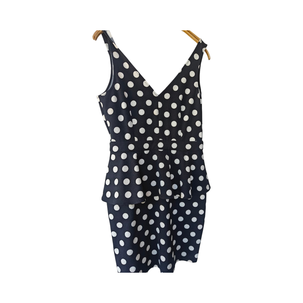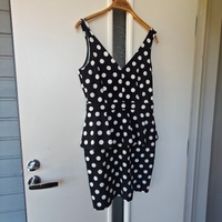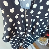 Musta valkopilkullinen mekko. Käytetty 1-2 kertaa. Menee m/l.