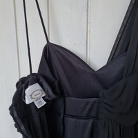 Henkivartalonmyötäinen yläosa, liehuva helma, olkaimet. Koko XL. Mekon pituus 105 cm. Merkki Dollar. Made in USA.