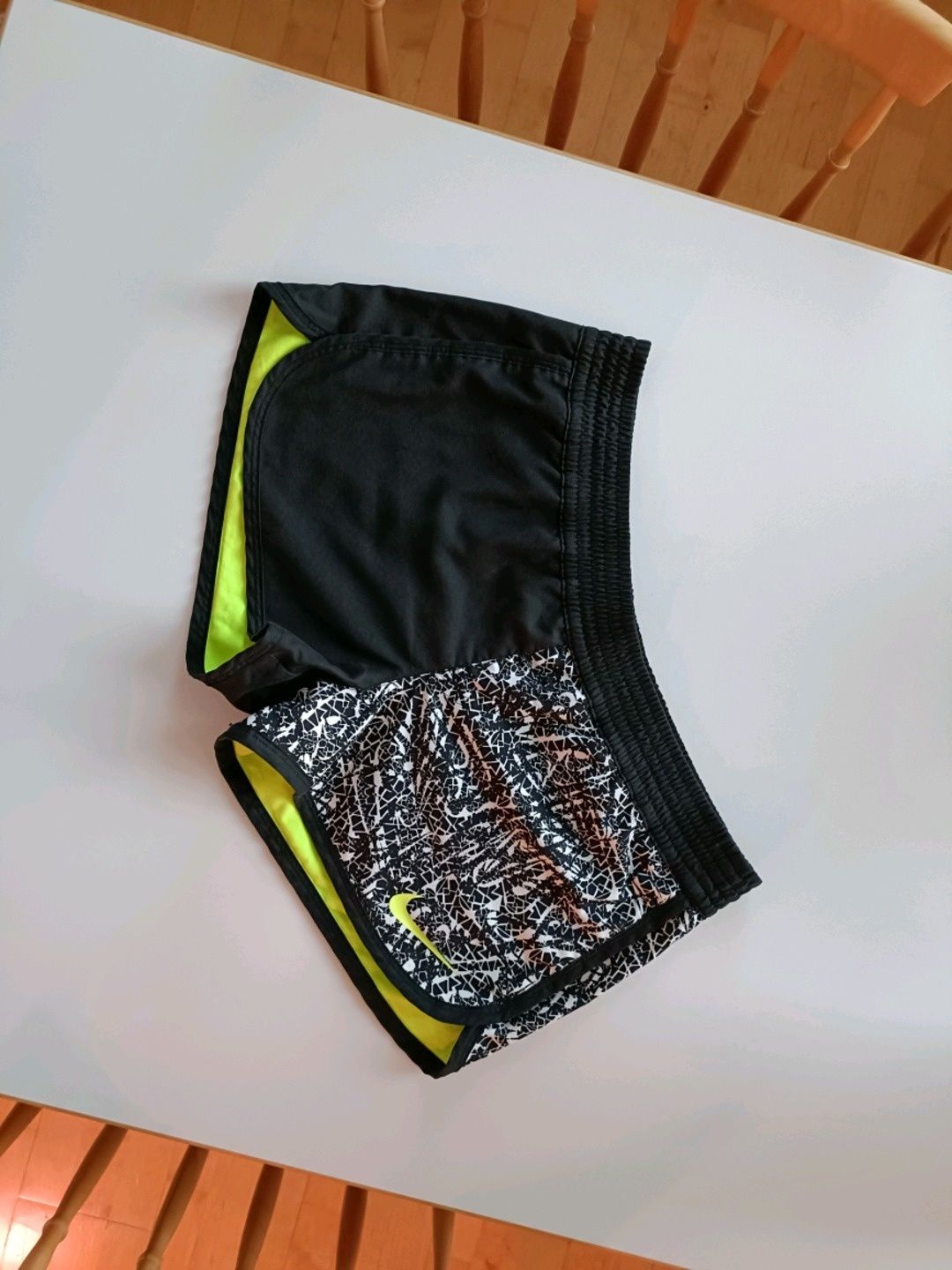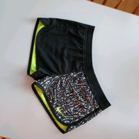 Niken käännettävät lyhyet sortsit. Mustavalkoinen tai limen/sitruunan keltainen. Pesu/materiaalilappu leikattu pois käännettävyyden vuoksi. Kokolappu ei ole. Arvioin kooksi S/M. Vyötärön leveys n. 42 cm ja joustaa jonkin verran. Sisälahkeen mitta n. 6,5 cm. Myynnissä myös muualla, joten varmista saatavuus ennen ostoa.