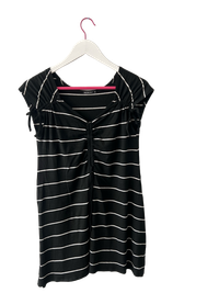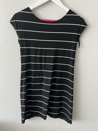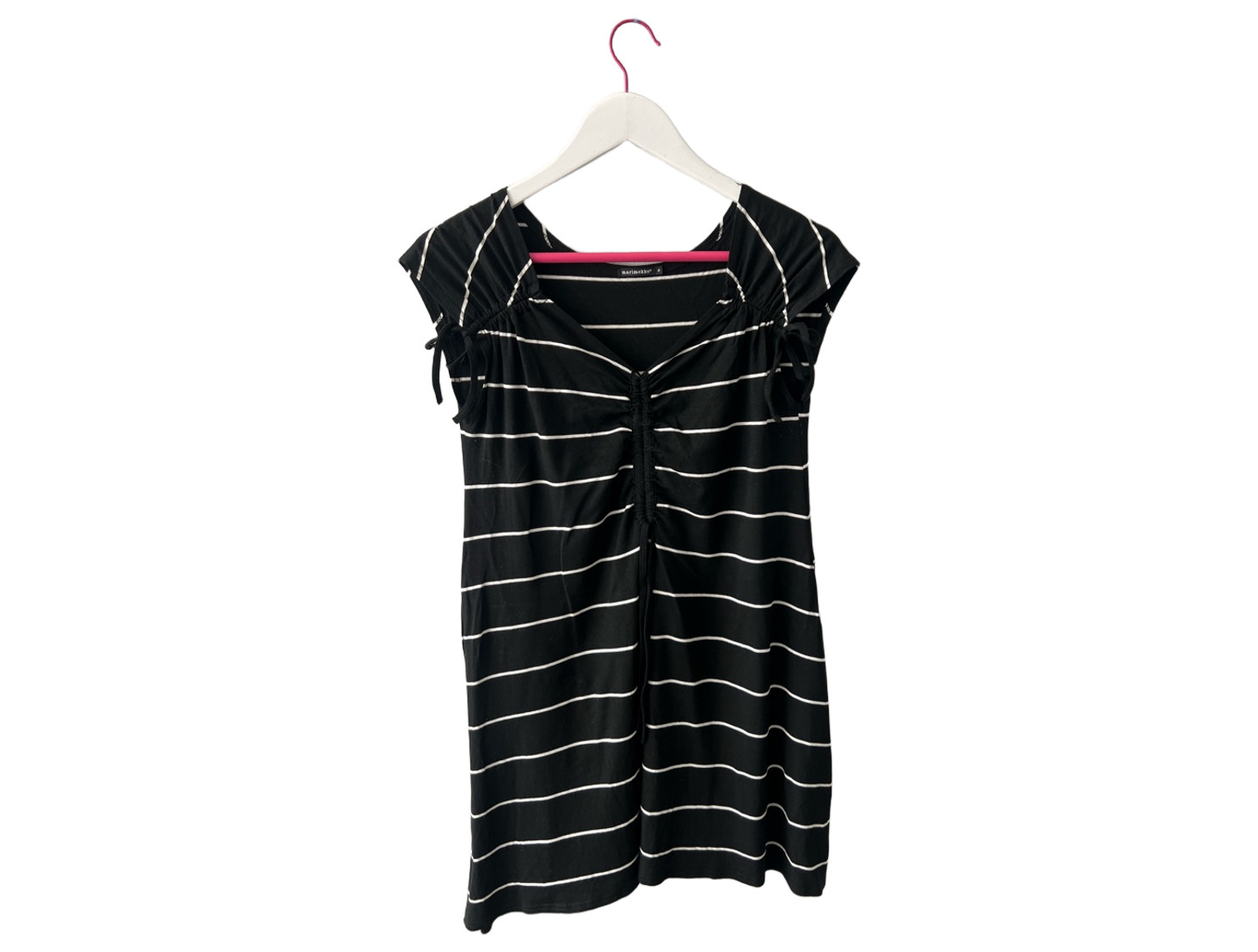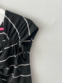 Mustavalkoinen raidallinen mekko, nyörityksellä edessä
