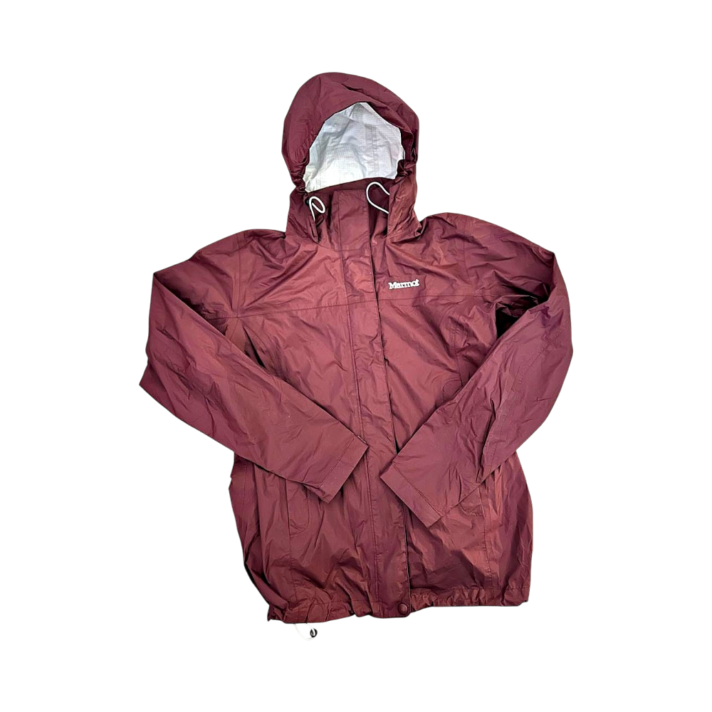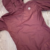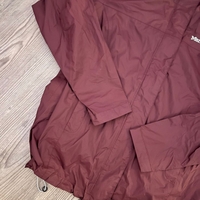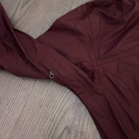 Siistikuntoinen veden- ja tuulenpitävä kuoritakki, koko s. Viininpunainen. Pituus noin 66cm ja kai kai mitta noin 50cm. Kainaloissa vetoketjulliset tuuletusaukot