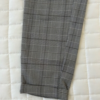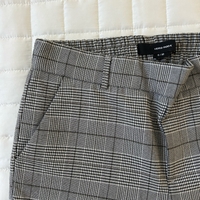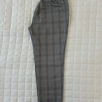 Harmaat ruudulliset housut, joustava vyötärö, siistit lahkeet.